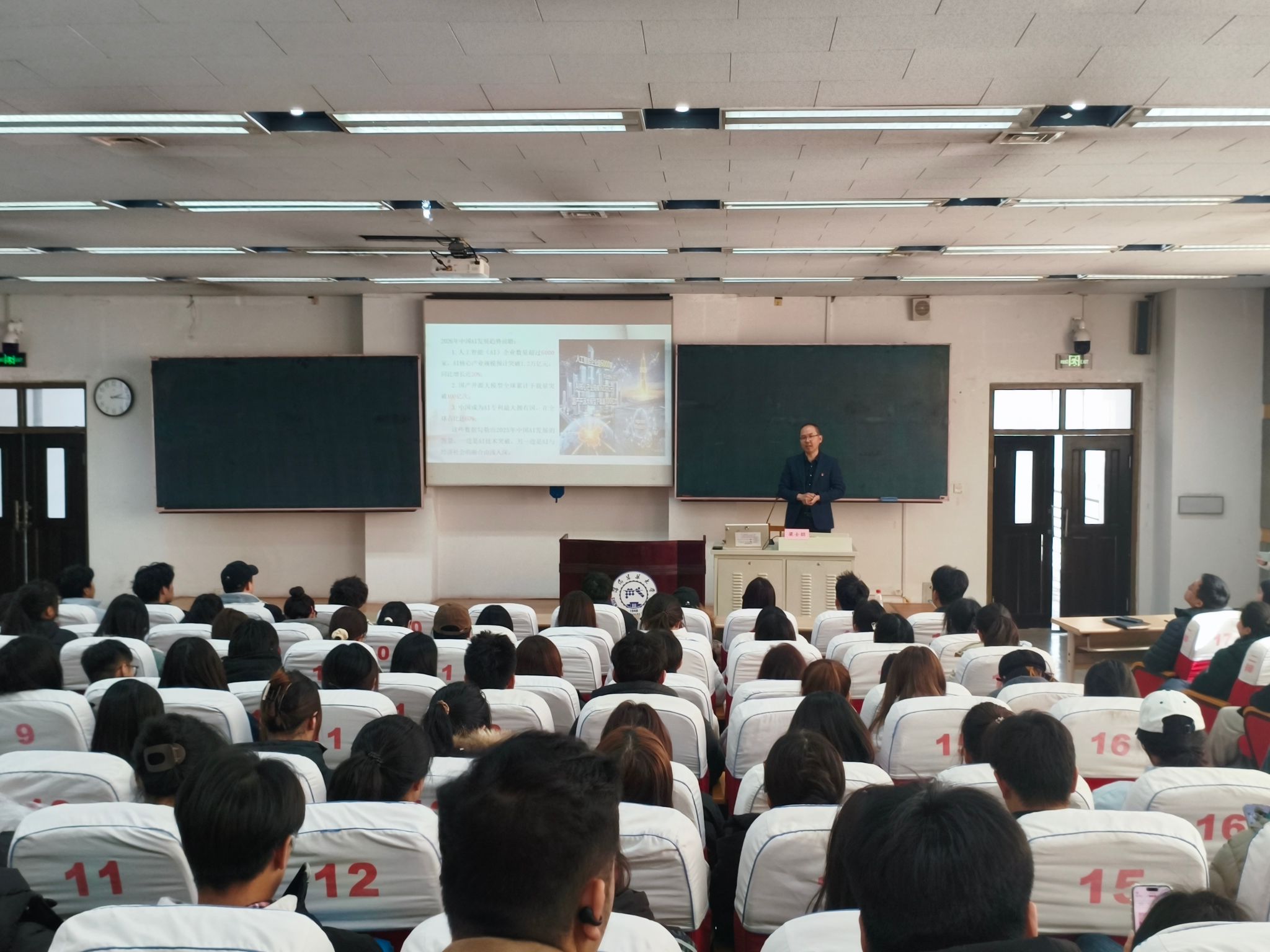 宣讲会上,梁士朋围绕党的二十届四中全会核心要义和精神实质作系统深入解读,并以“ai发展及当代大学生应对策略”为主题,从人工智能技术发展现状、面临的风险挑战、大学生应对之策三个维度进行全面阐释。宣讲中,他还结合辽宁“时代楷模”金城龙同志的先进事迹,勉励在场学生要深刻认识科技创新在推动高质量发展、实现中国式现代化进程中的关键作用,自觉把个人专业学习与国家战略需求紧密结合,既要夯实管理科学理论功底,更要主动培育创新思维,密切关注建筑工业化、绿色建筑、智能建造等前沿领域,努力成长为懂技术、善管理、能创新的复合型人才,以过硬本领和实际行动响应时代召唤、勇担时代使命。