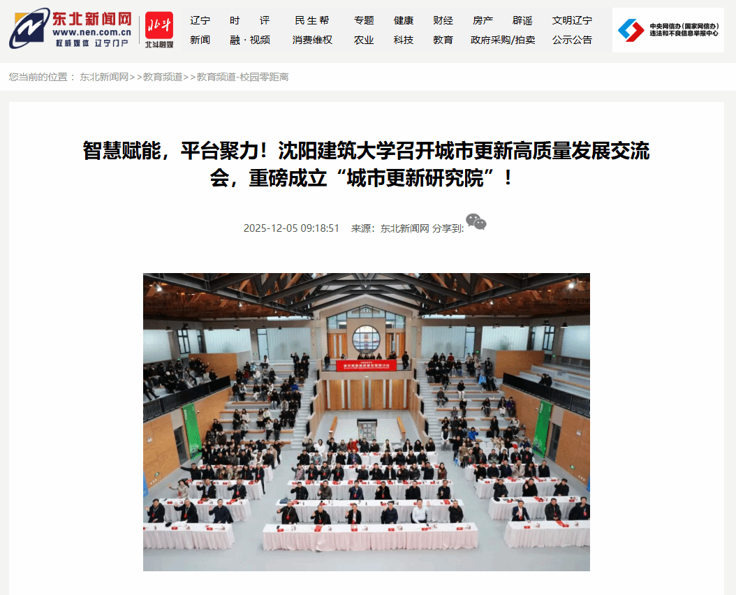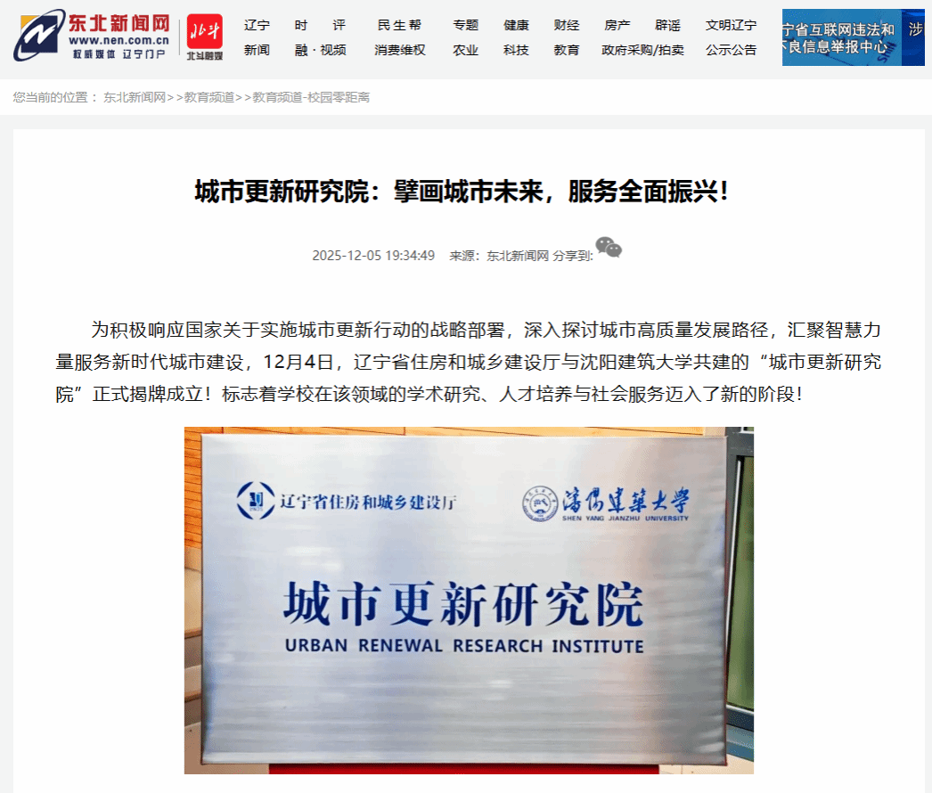编者按:近日,沈阳建筑大学举办城市更新高质量发展研讨会,辽宁省住房和城乡建设厅与沈阳建筑大学共建的城市更新研究院正式揭牌成立。新华社、东北新闻网对此进行了宣传报道。现将相关报道转载如下: