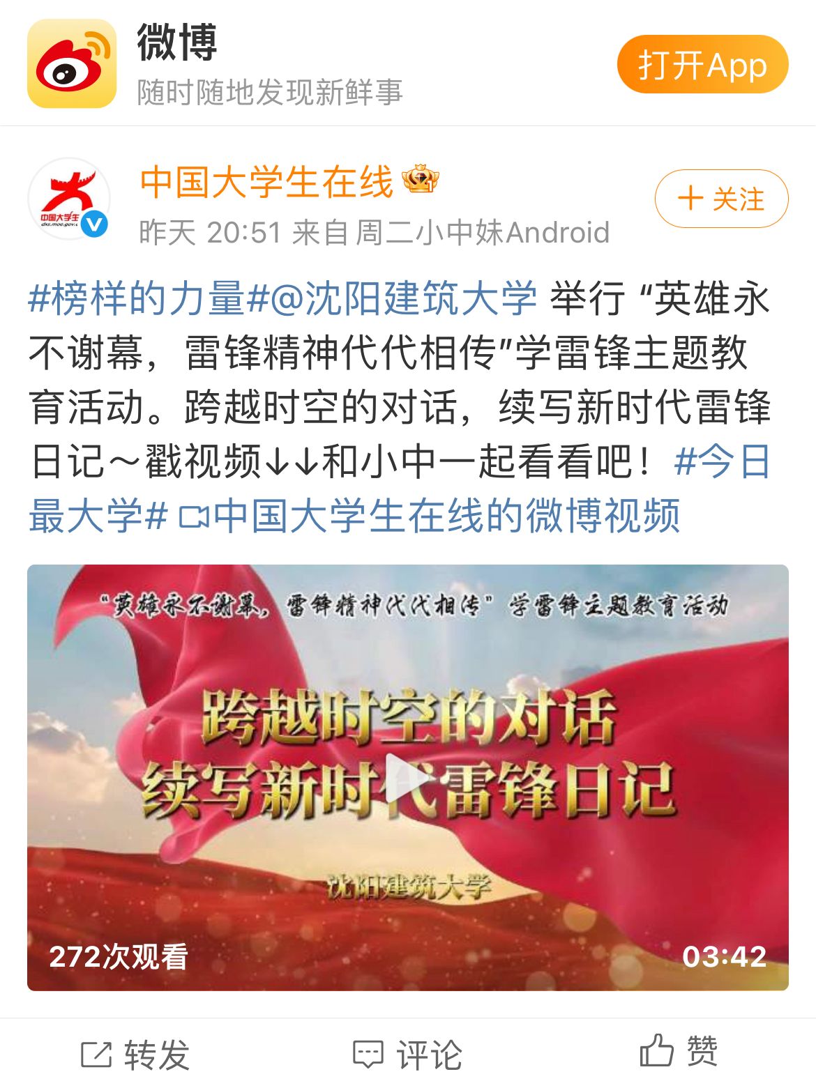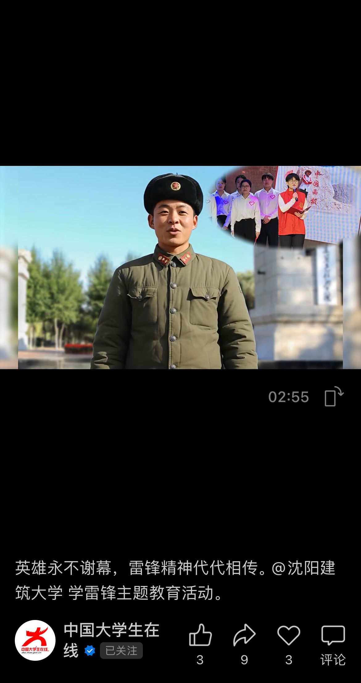编者按:3月5日,沈阳建筑大学举行以“英雄永不谢幕,雷锋精神代代相传”为主题的2026年春季“开学第一课”暨学雷锋主题教育活动启动仪式。我校师生代表与沈阳建筑大学附属小学学生共同表演了快闪节目《新时代雷锋日记》,节目以ai技术生动复原了雷锋同志的青年形象,两代人实现了与雷锋的隔空对话。中国大学生在线对此进行了宣传报道。现将相关报道转载如下: